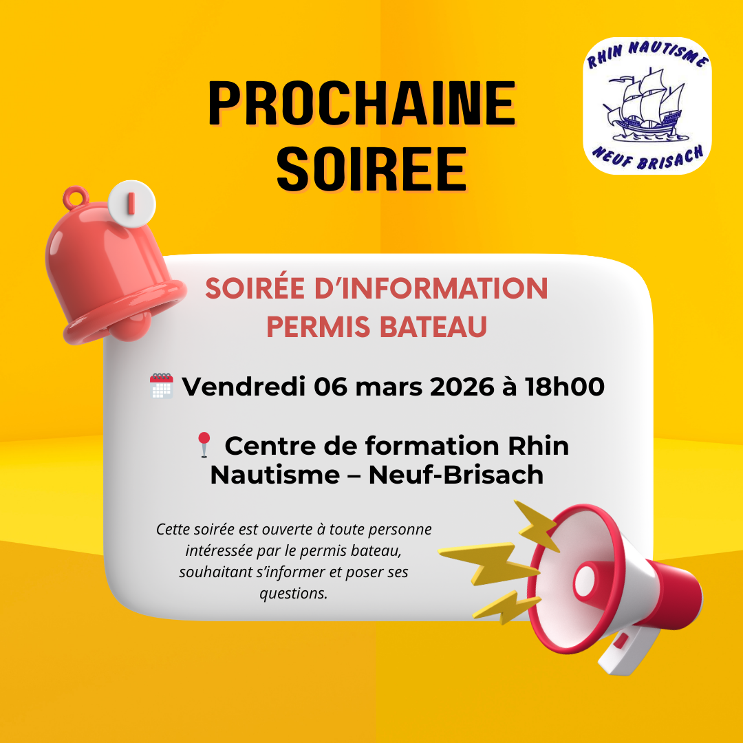 Rhin Nautsime 6 rue de l'église, Neuf-Brisach, FranceLa réunion de rentrée aura lieu le vendredi 29 août 2025 à 18h à Neuf-Brisach.Vous pourrez vous inscrire directement sur place pour vos permis bateau.